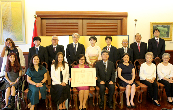 La entrega de las condecoraciones “Orden del Tesoro Sagrado, Rayos Dorados con Cinta Colgante” al abogado Jorge Luis Toyama Miyagusuku, y “Orden del Sol Naciente, Rayos de Plata” a Francisca Amemiya Kato de Sakata se realizaron en sendas ceremonias celebradas en la residencia del embajador Tsuyochi Yamamoto. En la ceremonia del primero se contó con la presencia del ex ministro de Justicia y Derechos Humanos y miembro de la Asociación de Abogados Nikkei Eduardo Arana Ysa; Jorge Igei, presidente de la Asociación Peruano Japonesa (APJ), Luis Baba, presidente de la Asociación de Condecorados, entre otros representantes de las instituciones nikkei, además de familiares y amistades.