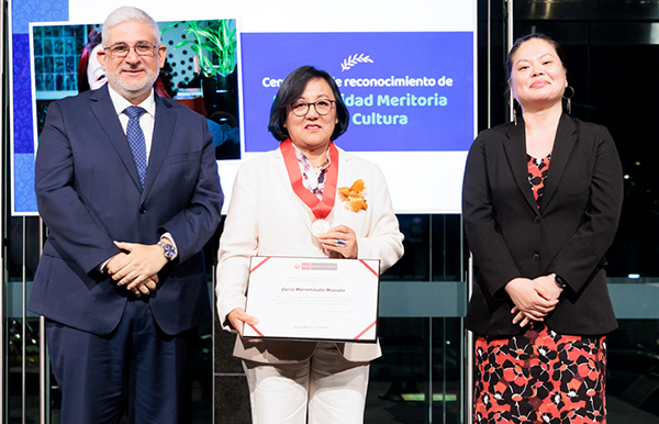 El Ministerio de Cultura ha otorgado la distinción de “Personalidad Meritoria de la Cultura” a la escritora, poeta y gestora cultural Doris Moromisato Miasato, en reconocimiento a su amplia trayectoria literaria y su incansable labor en la promoción del libro y la lectura en el Perú. Este reconocimiento, constituye un homenaje a una vida dedicada a la cultura, la literatura y la gestión cultural. Nunca fue tan merecido este galardón como en el caso de Doris Moromisato, quien ha entregado más de cuatro décadas de trabajo constante al servicio de la cultura nacional.