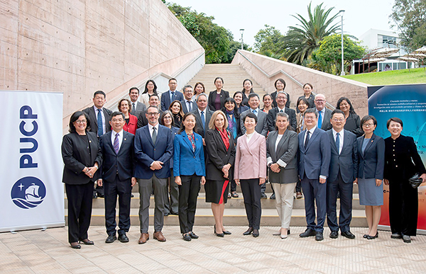 Anfitriones y visitantes, en encuentro académico. Foto: Pontificia Universidad Católica del Perú