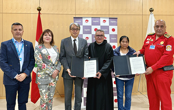 En la sede de la embajada del Japón, con presencia de la embajadora Noela Pantoja, directora ejecutiva de la Agencia Peruana de Cooperación Internacional, del brigadier general CBP José Medina, gerente general de la Intendencia Nacional de Bomberos del Perú, del sacerdote Felix Acuña, director ejecutivo del Hogar Clínica San Juan de Dios, de María Tuñoque, presidenta de la ONG Firemen & Health Hope y del embajador Yamamoto Tsuyoshi, se suscribieron contratos de donación para la ejecución de proyectos comunitarios en varias regiones del país.
