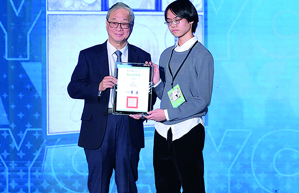 En la gráfica, el ministro de Cultura Li Yuan junto al ganador en la categoría individual del primer Premio Juvenil de Cómics, Chiang Yi-chen.