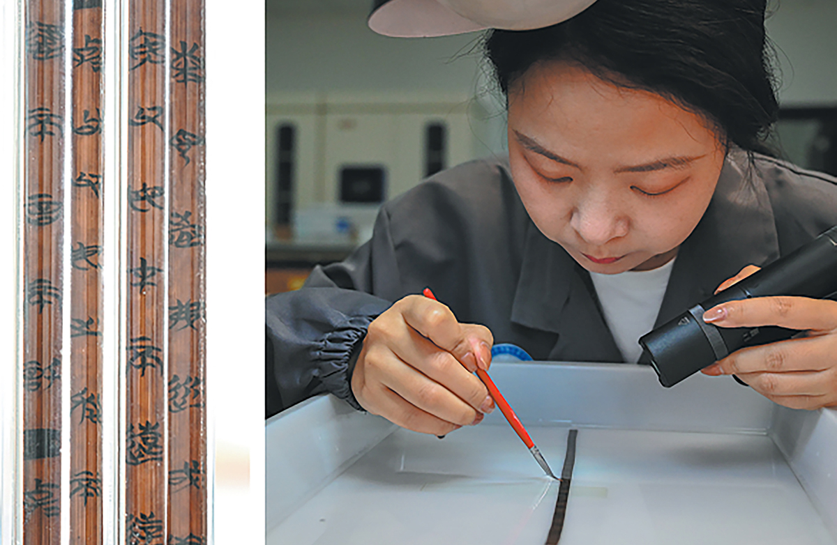El Centro de Protección de Reliquias Culturales de Jingzhou ha desarrollado tecnologías esenciales para abordar los desafíos de la restauración de láminas de bambú y madera empapadas en agua, y desvelar el misterio de unas 180 000 piezas en todo el país durante las últimas tres décadas.